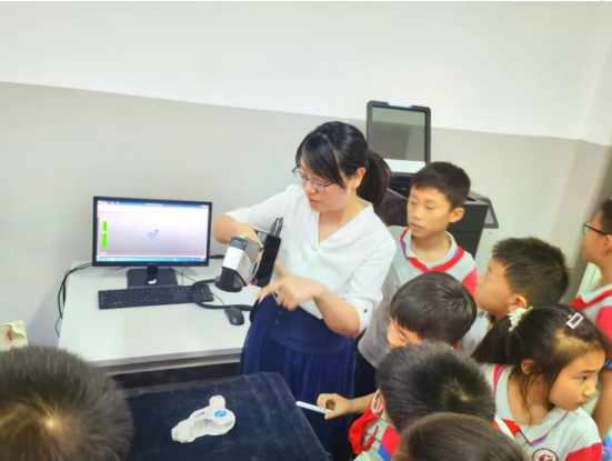 来到逆向工程实训室,同学们聆听了老师对逆向工程技术的深入解读。从概念到工作原理,再到新能源汽车、文物及艺术品保护、运动装备定制等方面的应用案例,同学们对逆向工程这一前沿科技有了更深入的了解。在老师的指导下,同学们还亲手体验了用三维扫描仪采集玩具手枪表面数据、建立三维数字模型的过程,感受到了科技带给我们的无限可能。
